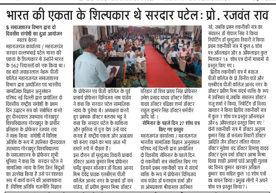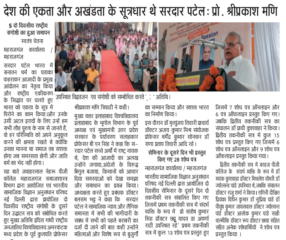 National Seminar on Sardar Patel by Sociology Department