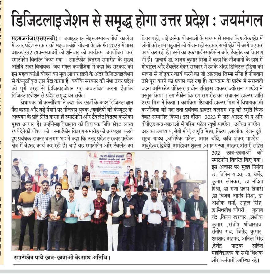 Copyright © 2026 - All Rights Reserved - Jawahar Lal Nehru Smarak P.G. College Maharajganj (U.P.) | Privacy Policy | Terms & Conditions |